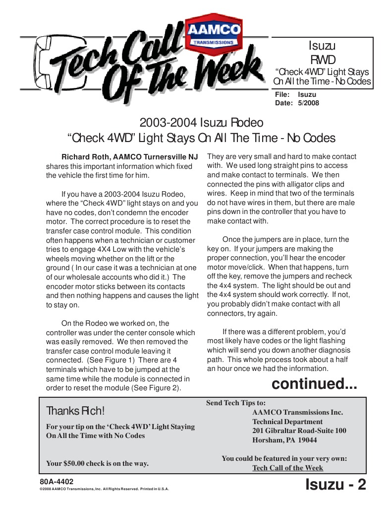 Ra Rodeo 2003 4wd Reset Procedure