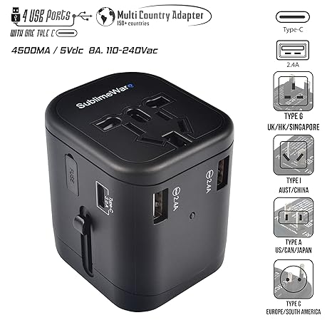Amazon Com Usb Type C Travel Power Plug Adapter 4 Usb Ports 3