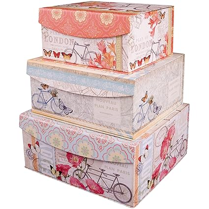 Decorative Nested Flip Top Storage Boxes Nested Set Of 3 Amazon