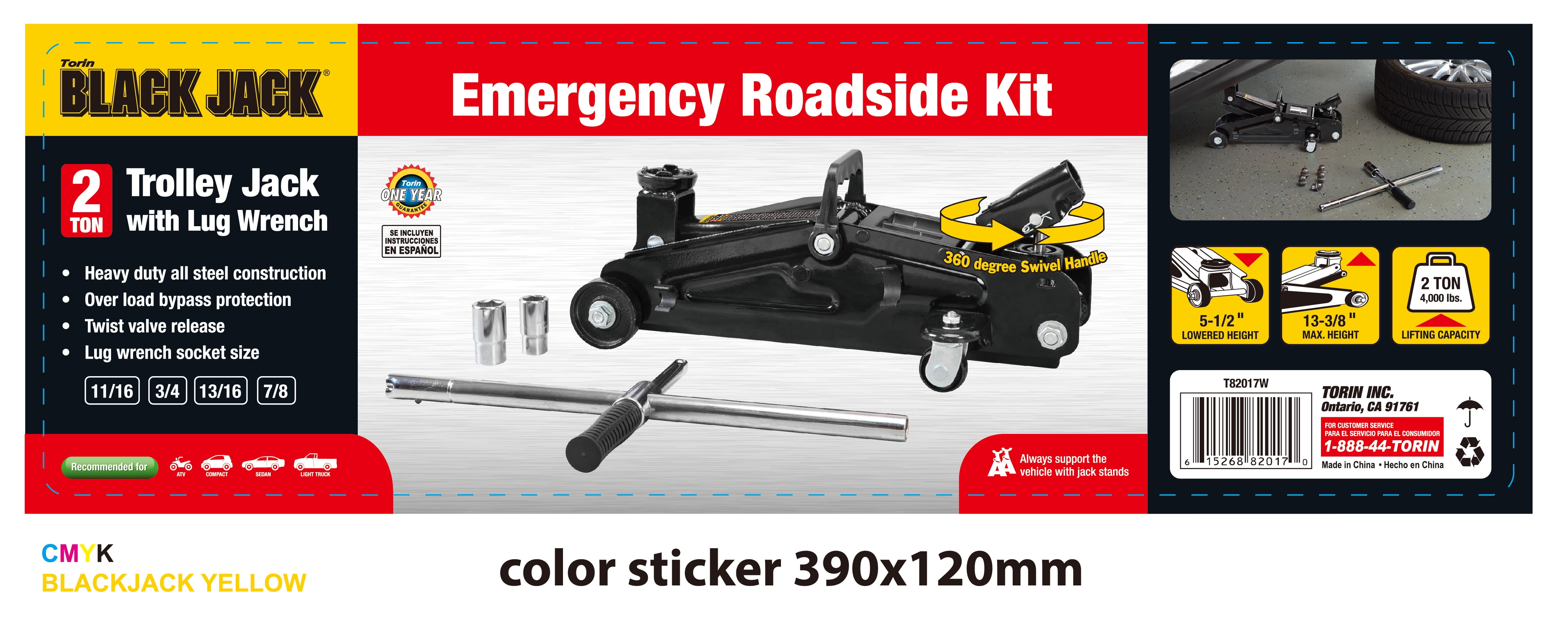 Torin Blackjack Roadside Kit With A 2 Ton Trolley Jack With Lug