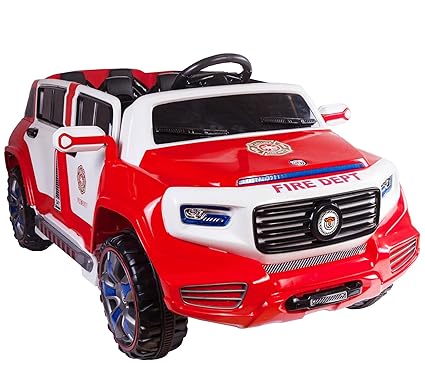 Amazon Com 4 Door Ride On Two Seater Fire Truck Electric Toy Car