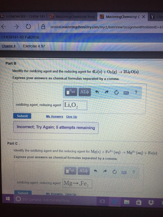 Solved Identify The Oxidizing Agent And The Reducing Agen