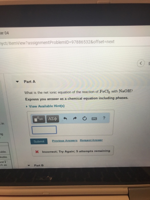 What Is The Net Ionic Equation Of The Reaction Of Fecl2 With Naoh