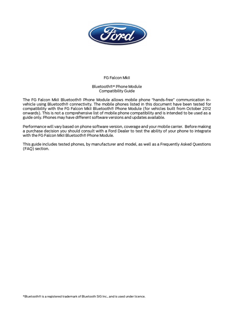 Ford Falcon Bluetooth Compatibility Guide Pdf Bluetooth I Phone