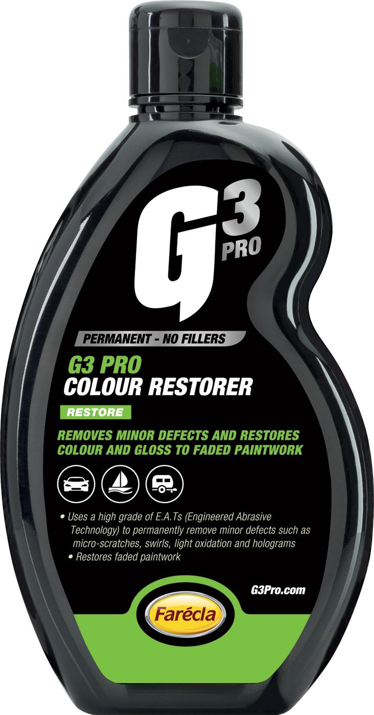 Prove that farecla g3 professional colour restorer brings back shine to a faded paint and restores it permanently. Bring paint back to its original as new show shine. The farecla g3 colour restorer uses a blend of engineered diminishing abrasives to effectively and permanently restore dull paintwork and remove minor defects such as micro scratches swirls light oxidation holograms and tree sap. It trails arch rival meguiars.