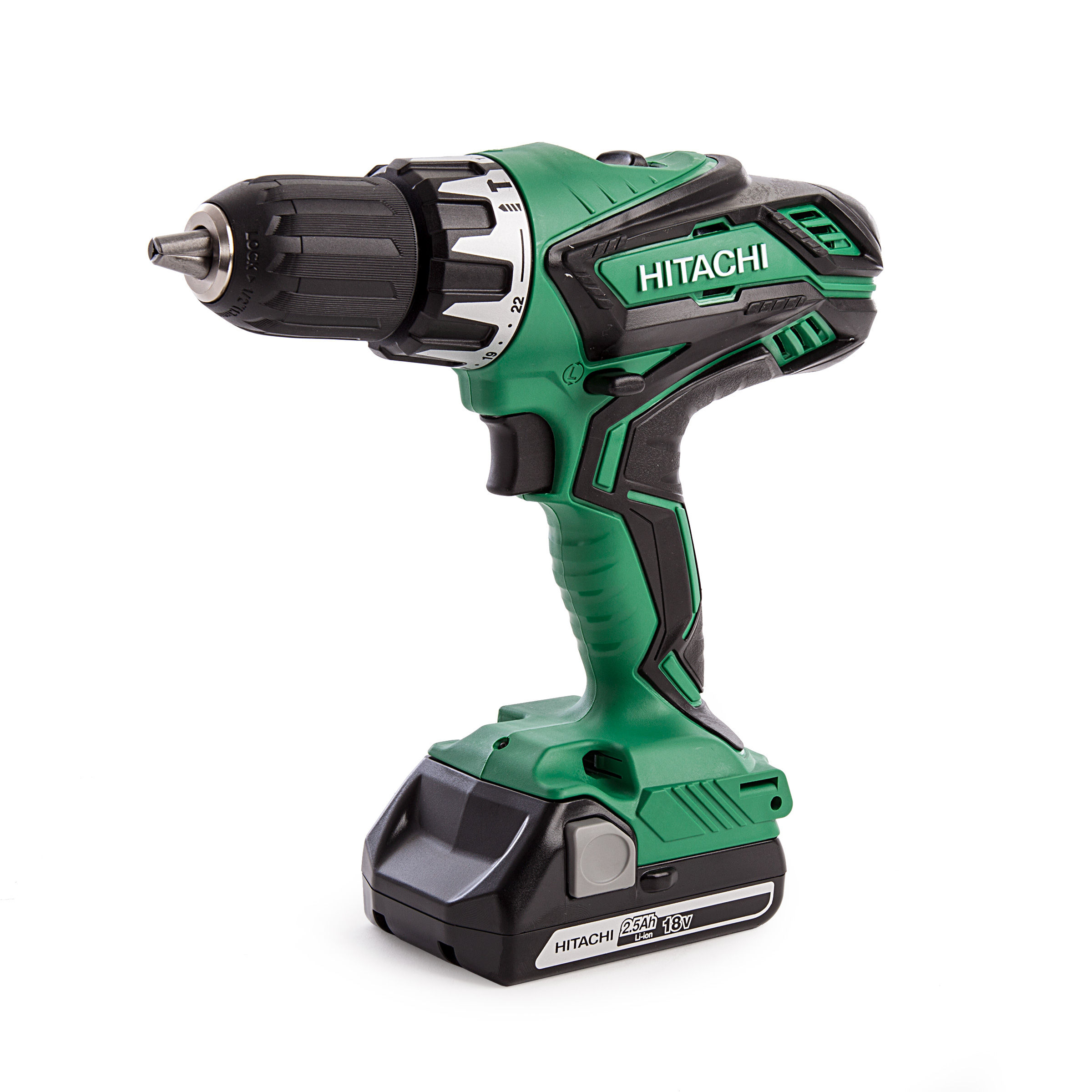 2 when using this unit as a drill align the clutch dial drill mark with the triangle mark on the outer body. This kit comes supplied with 2x 25ah li ion batteries uc 18yksl charger driver bit and carry case. Hitachi dv18dgljg 18v cordless combi drill inc 2x 25ah lithium ion batteries uc18yksl charger and carry case. The hitachi dv18dgl combi drill has a high power motor with maximum tightening torque of 55nm hard the two speed gear box and 22 stage adjustable torque provide maximum control in applications as well as a forward and reserve option.
