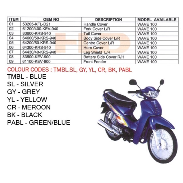 Hld Cover Set Honda Wave 100r Shopee Malaysia