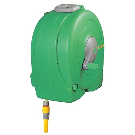Hozelock wall mounted and freestanding hose reels and carts. The hose that puts itself away. This lightweight reel is the ideal hose storage system that can hold up to a total of 30m 125mm diameter hose. Tacklife hose reel 657 ft wall mounted retractable garden hose reelinclude 8 patterns hose nozzlebrass connectorany length lockauto rewind180 degree pivotfor garden watering car washing.