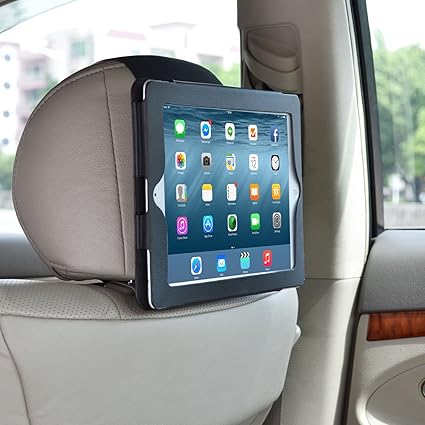 Car accessory manufacturers have quickly taken the hint offering up a plethora of ways to hang and support your ipad or other devices off a headrest to keep those rearward passengers entertained and hopefully quiet on the open road. 40 out of 5 stars 58. The mount makes use of a strong synthetic leather that is resistant to any staining as well as wear. Buy car headrest mount ansteker car headrest tablet holder for ipad proairmini kindle fire hd nintendo switch iphoneother smartphones stand cradle bracket holder for 4 11with 3600 angle adjustable.