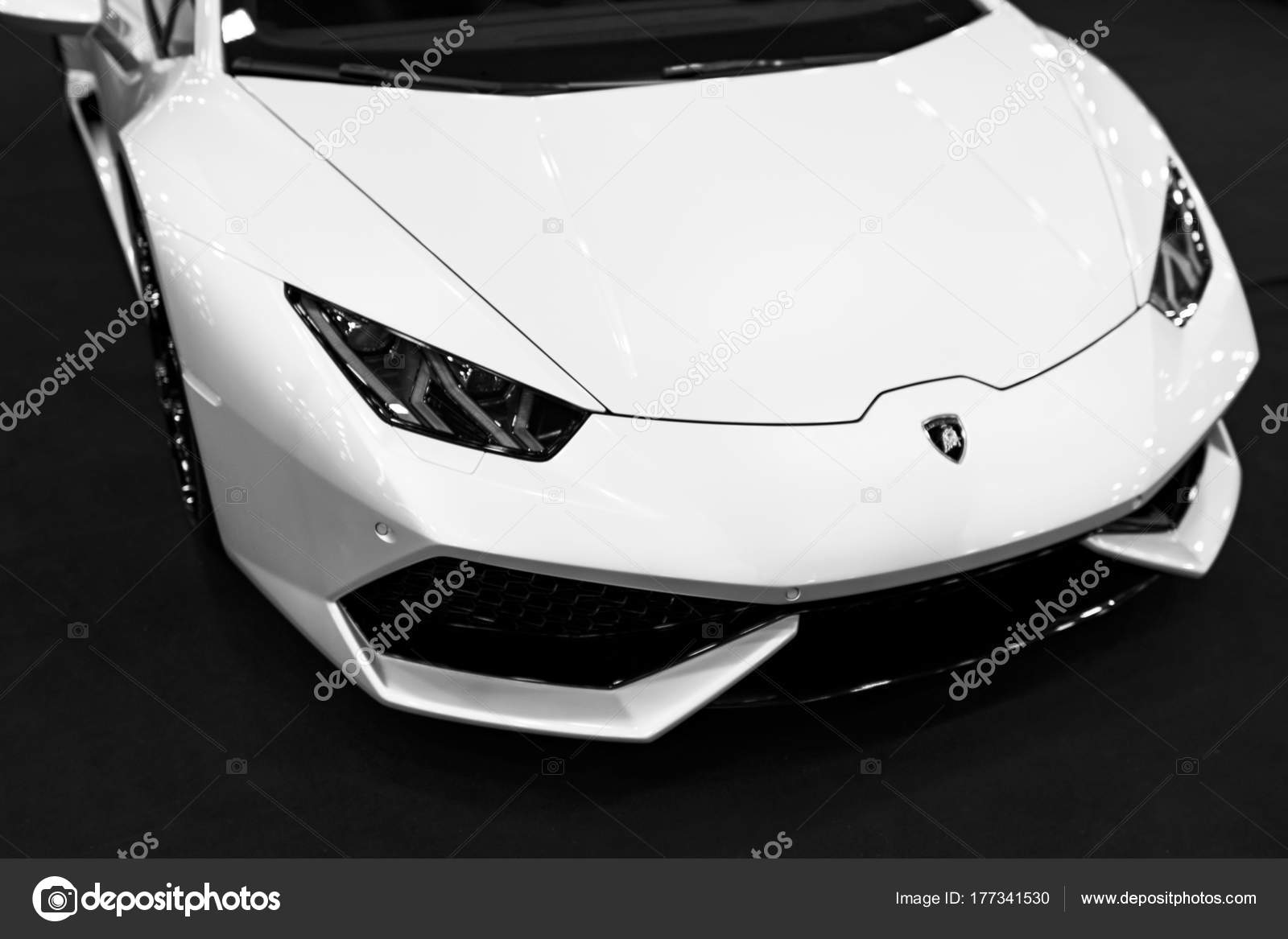 Framre Sikt Av For Sportbil For Vit En Lyxig Lamborghini Huracan Lp