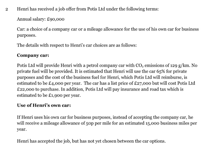 Solved 2 Henri Has Received A Job Offer From Potis Ltd Un