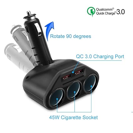 Amazon Com Rocketek 3 Socket 2 Port Usb Quick Charge 3 0 Car