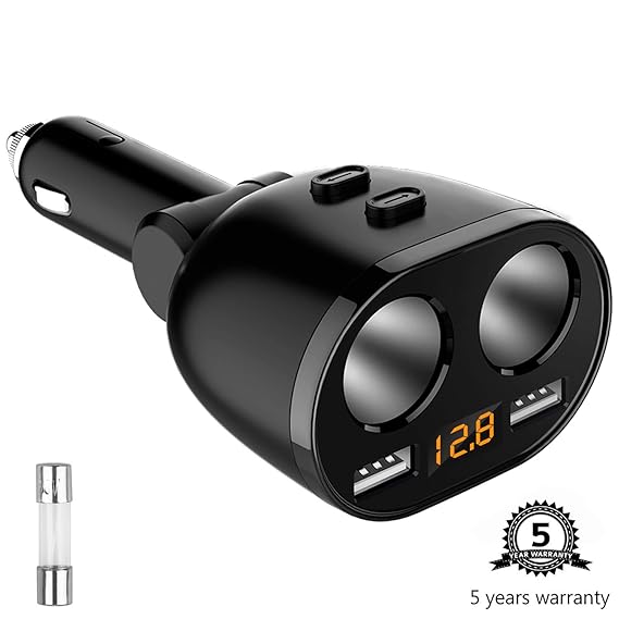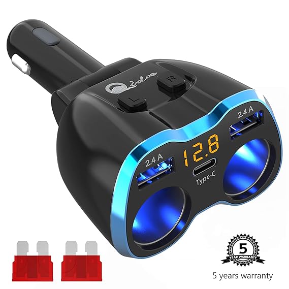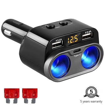 Amazon Com Usb C Car Charger Cigarette Lighter Splitter Adapter 2