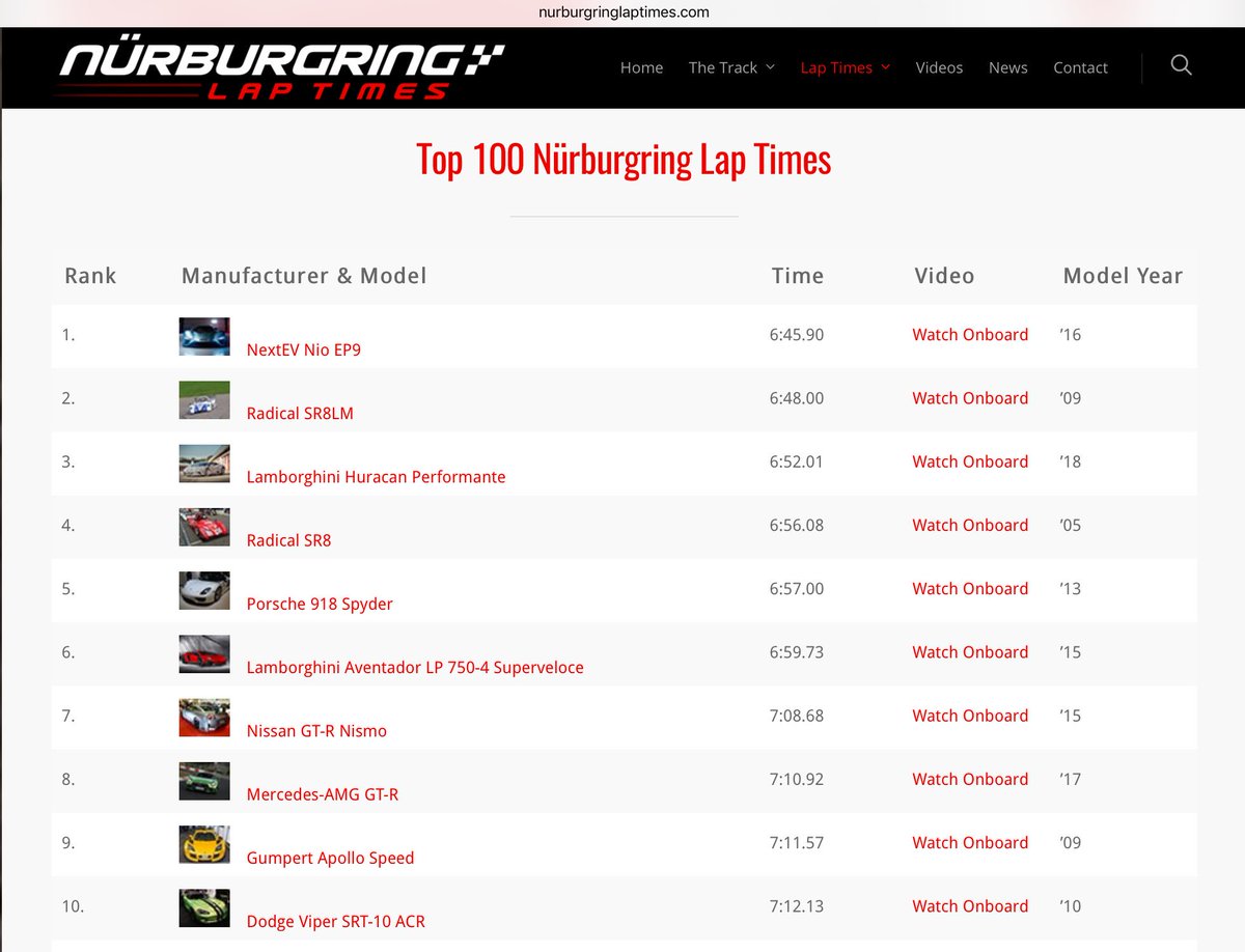Nurburgring Lap Times Top 100 Fastest Vehicles Around Nurburgring