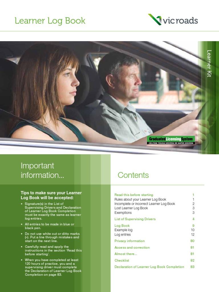 Vic Roads Learner Log Book Guide For Learners Replacement Copy