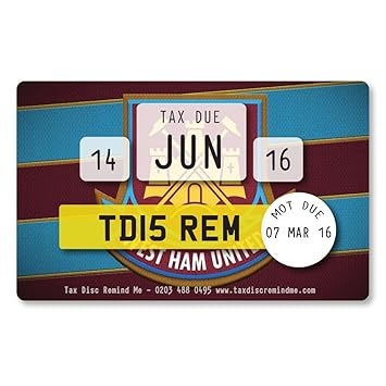 Custom Road Vehicle Tax Card Reminder Sports West Ham Amazon Co