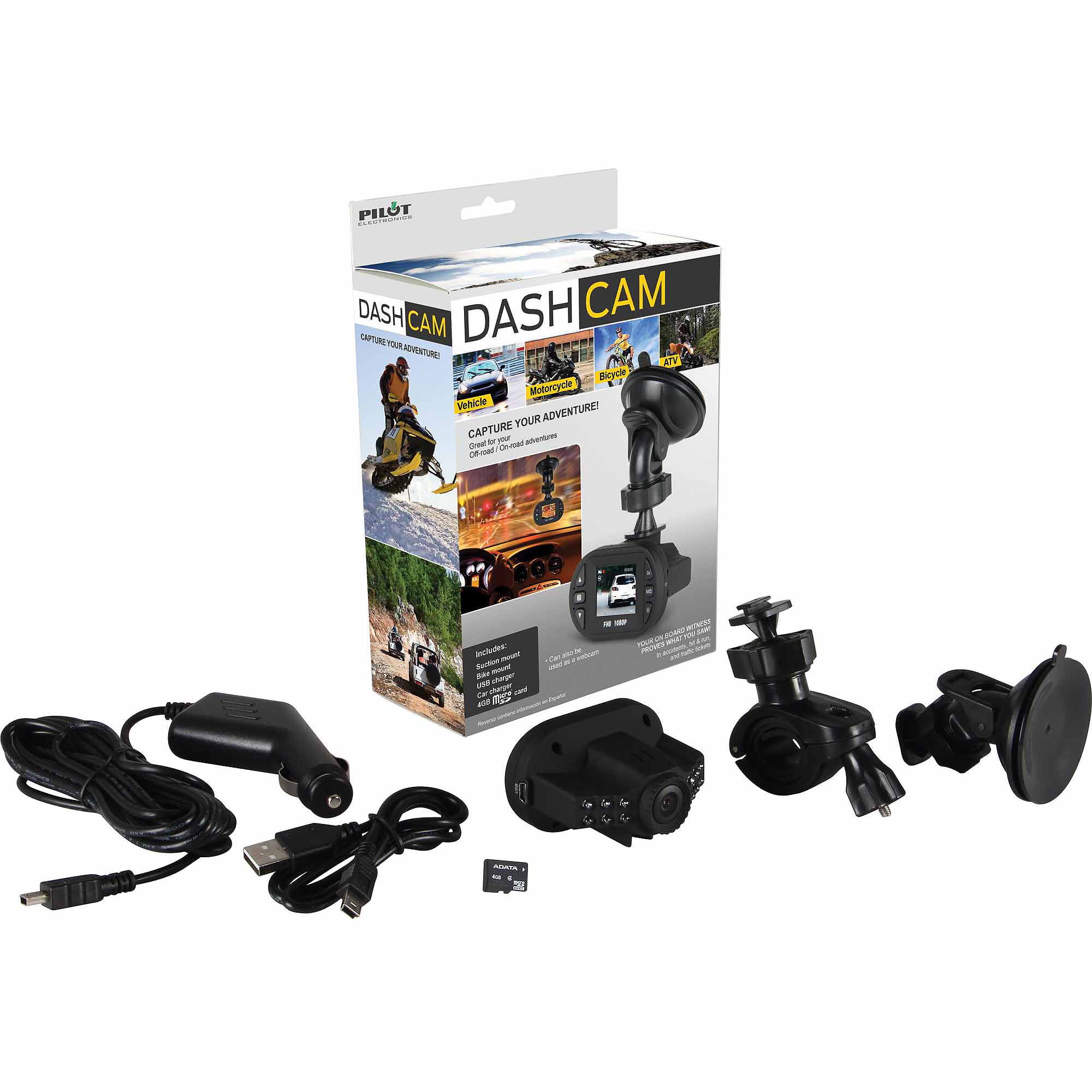 Pilot Dashcam Dash Cam Camera 4gb 720p Enhanced Night Vision For