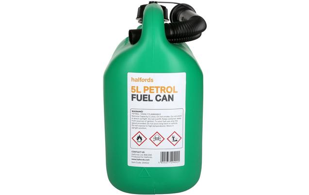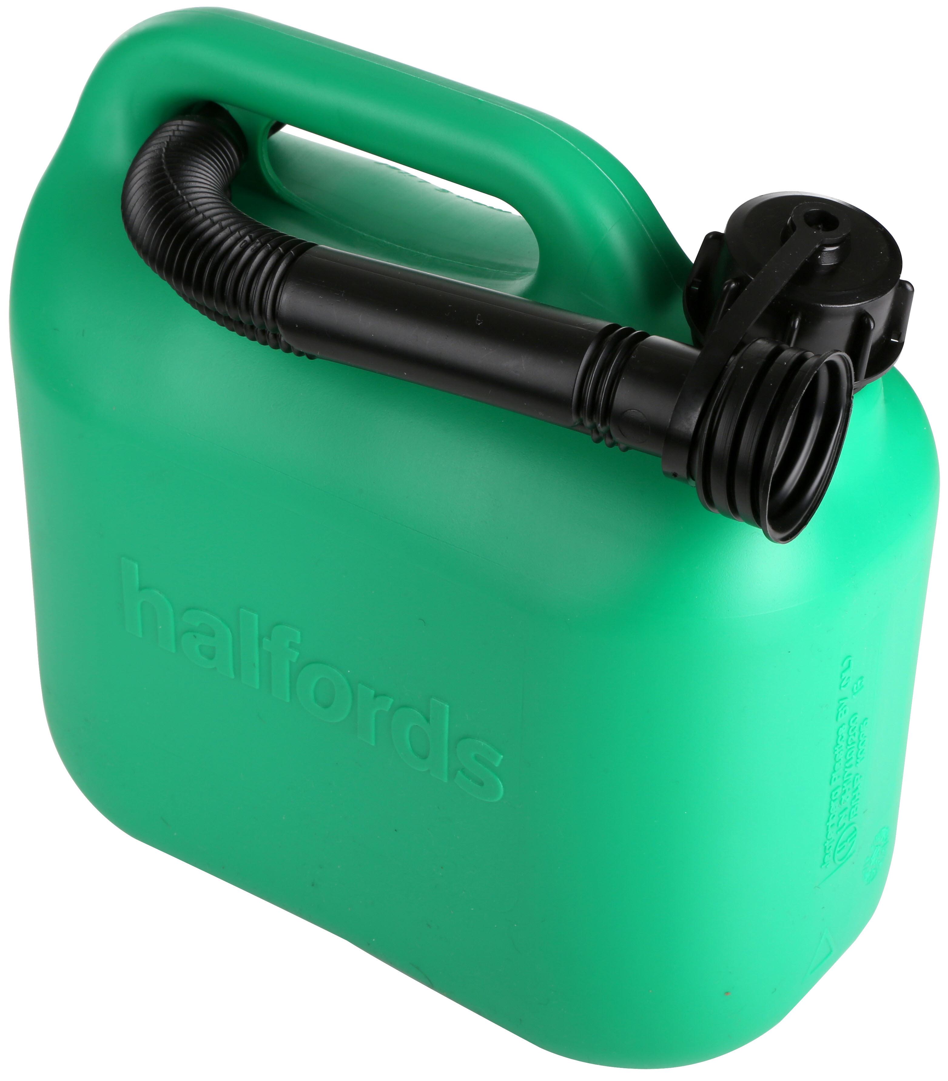 The Green Plastic Halfords Petrol Can Is Suitable For Up To 5 Litres