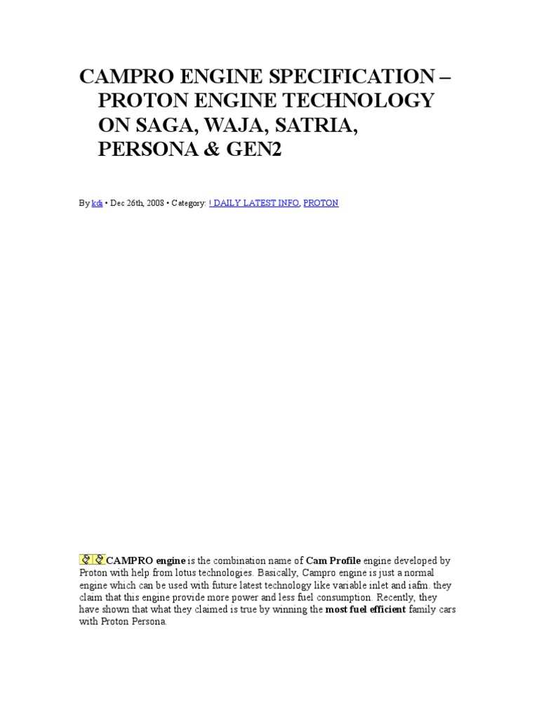 Campro Engine Specification Automotive Technologies 5 4k Views