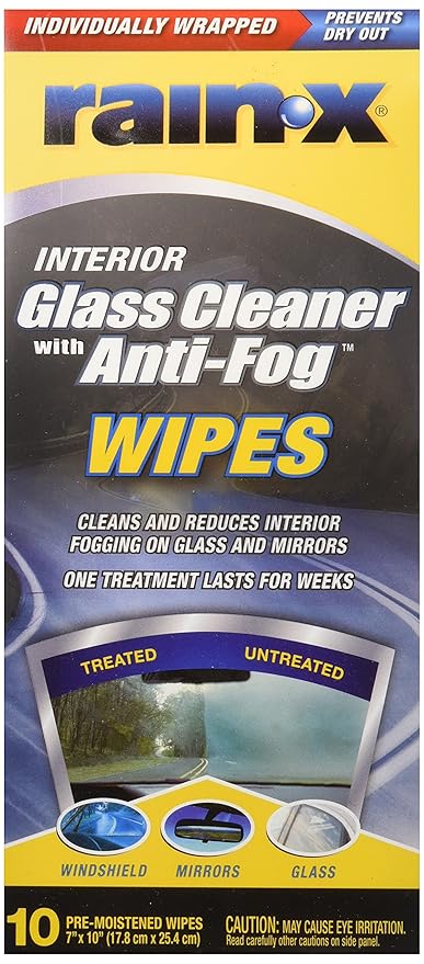 Rain X Interior Glass Cleaner With Anti Fog Wipes 10ct 630040