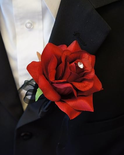 Corsage Black And Red With Rhinestones Real Touch Rose Wedding