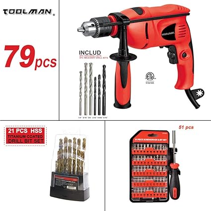 Toolman Electric Power Drill Driver Screwdriver Drill Bit Set 3 8
