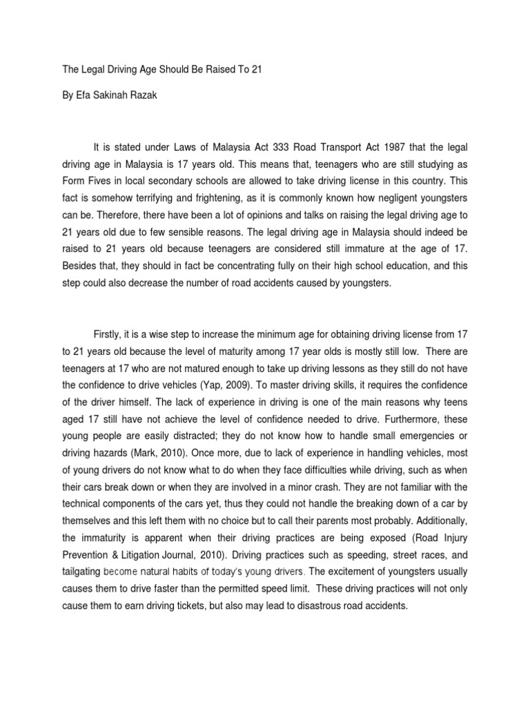 Should The Driving Age Be Raised To 21 Essay Example Topics And
