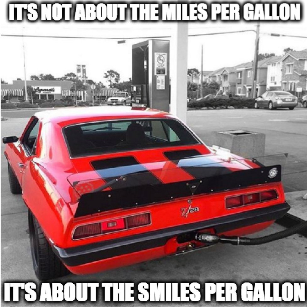 5 Miles Per Gallon 50 Smiles Per Gallon Camaro Race Car Meme