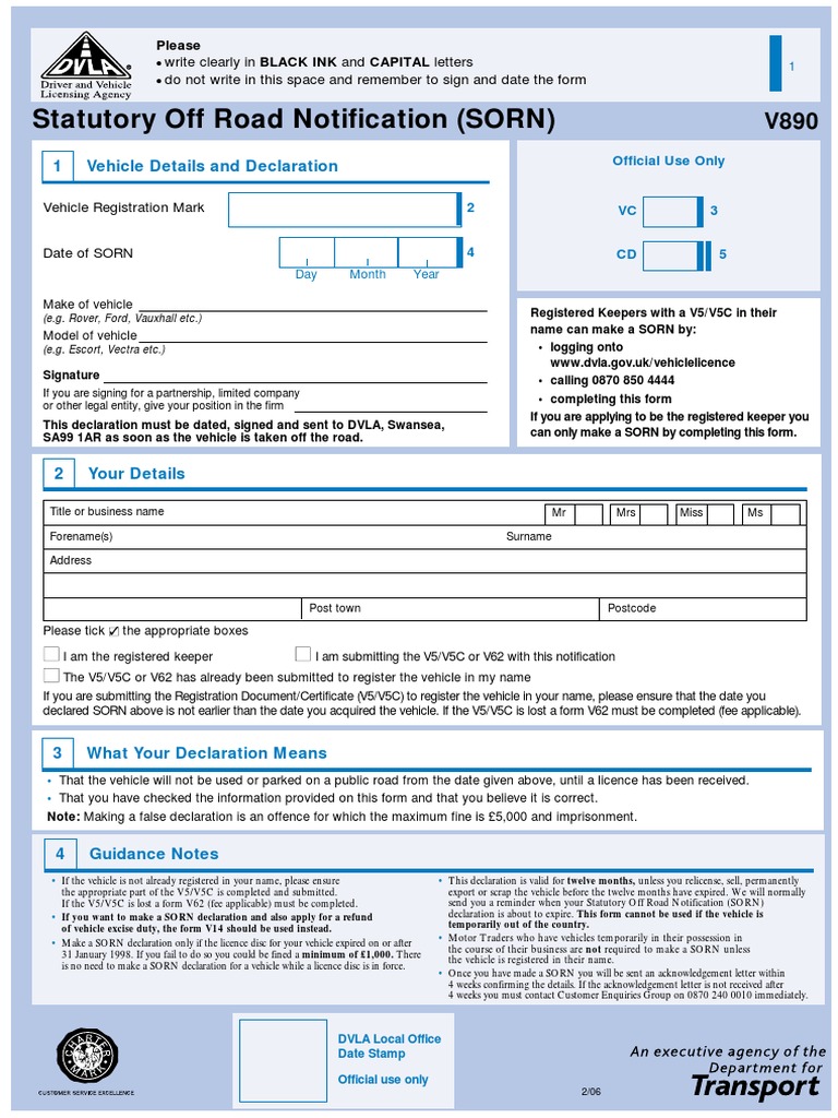 Make A Statutory Off Road Notification Form V890 Gov Uk