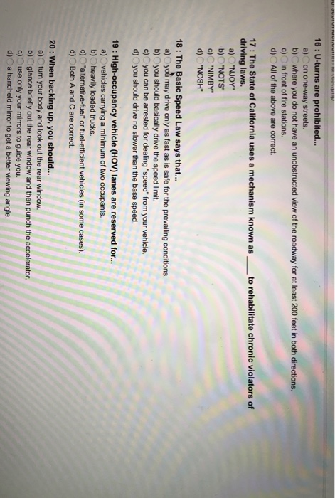 Solved U Turns Are Prohibited A On One Way Streets B