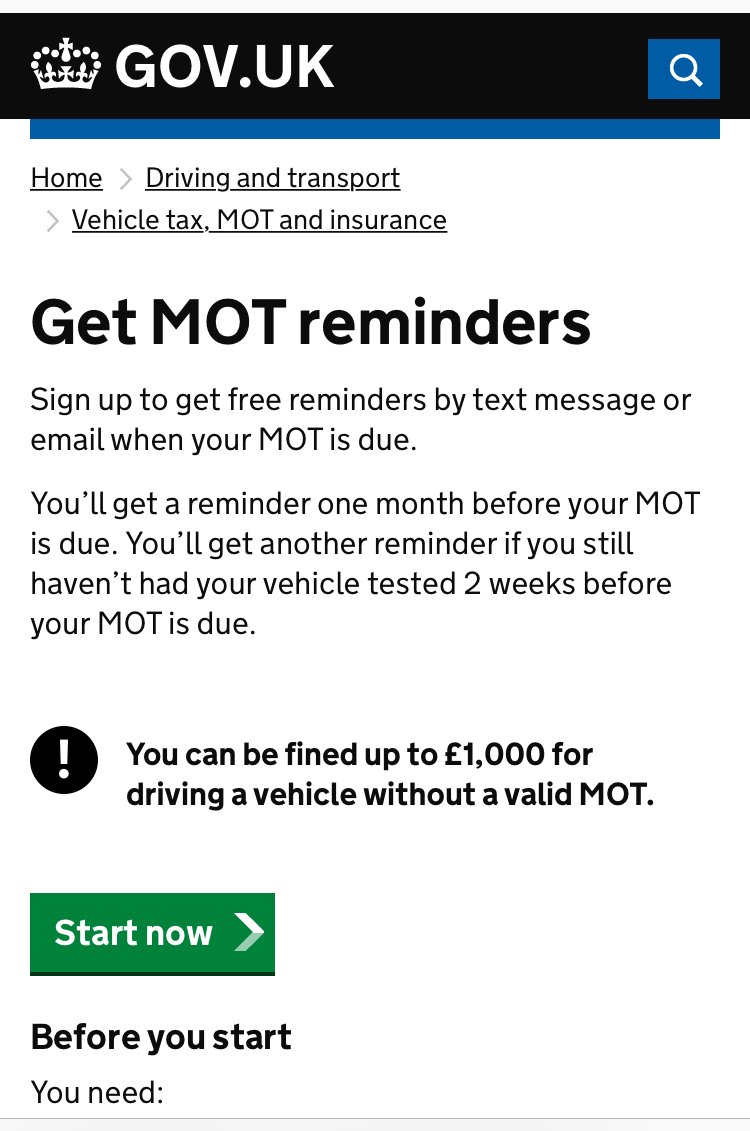 It will take only 2 minutes to fill in. You can book your vehicle in for its next mot test a minimum of one month prior to its renewal due date. Book online for only 2999 or create a free mot reminder. Driving without a valid mot is a criminal offence that could land you with a 2500 fine three penalty points and a possible driving ban.